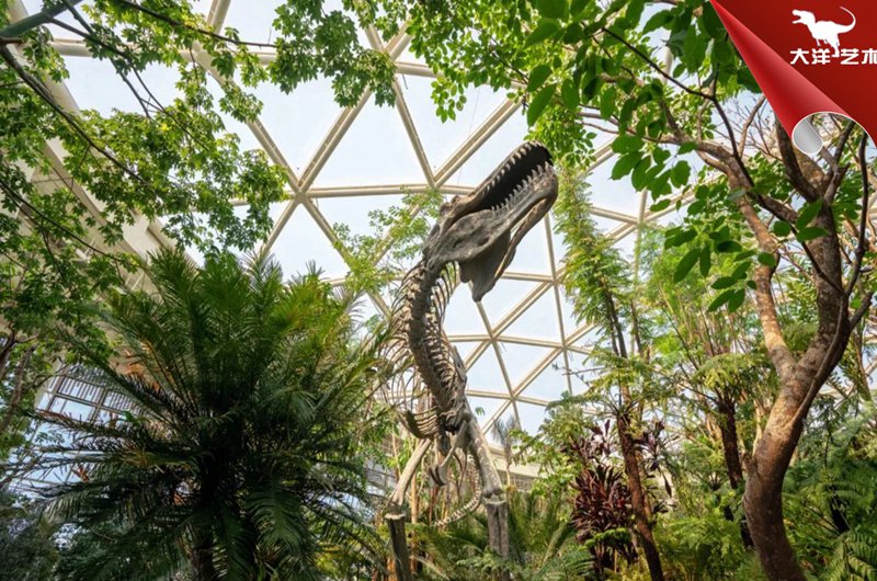 此次活動的植物館建筑分為三層,一層設有熱帶植物溫室,占地約3000平方米,匯聚600多種珍貴植物。我司在展館中展示的巨型仿真恐龍骨架在周圍珍惜植物的映襯下顯得栩栩如生,給人仿佛回到侏羅紀的視覺沖擊感!展館通過一系列高科技創(chuàng)意手法,向參觀者充分展示“植物的智慧”,呼喚人類保護植物,關愛地球,關注人類的未來。