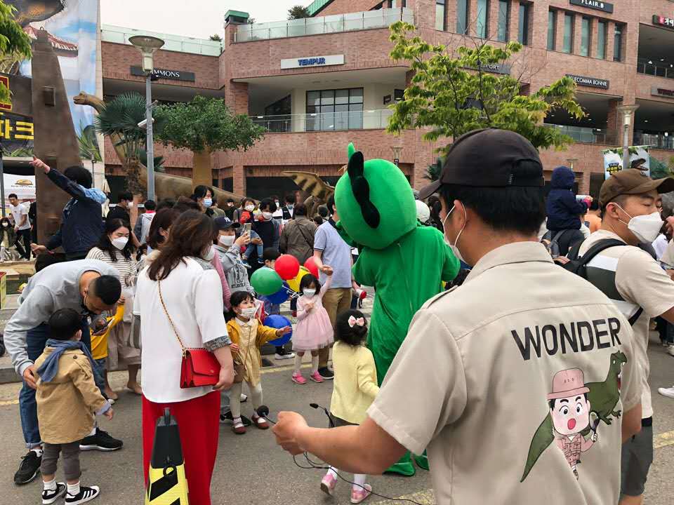 韓國(guó)樂天百貨反饋,剛安裝好的恐龍吸引了大量的游客駐足觀看拍照