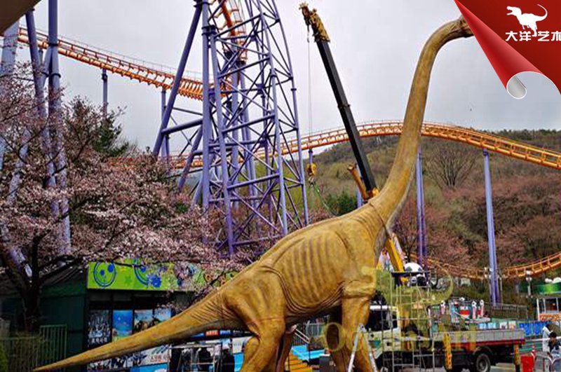 韓國首爾樂園是韓國著名主題游樂園之一,2019年,由我公司制作的仿真恐龍正式亮相于該主題樂園,產(chǎn)品深受當(dāng)?shù)赜慰拖矏邸?/p> 韓國恐龍公園安裝現(xiàn)場