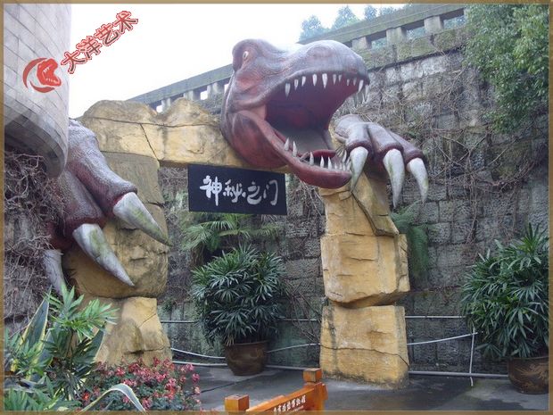 仿真恐龍雕塑門,主要用于主題公園大門、和各類園區(qū)、景區(qū)大門。自貢大洋藝術(shù)仿真恐龍制作工廠,專業(yè)制作景觀雕塑、玻璃鋼雕塑、微縮景觀等產(chǎn)品。歡迎廣大客戶來廠考察,聯(lián)系電話:13990016393