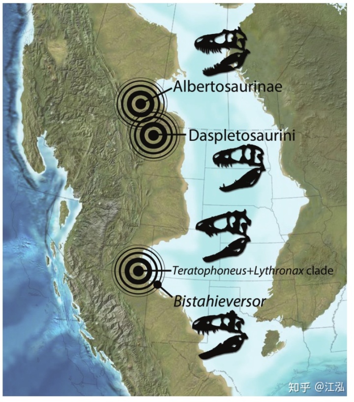 圖注:拉臘米迪亞大陸南北不同的霸王龍類,圖片來自網(wǎng)絡