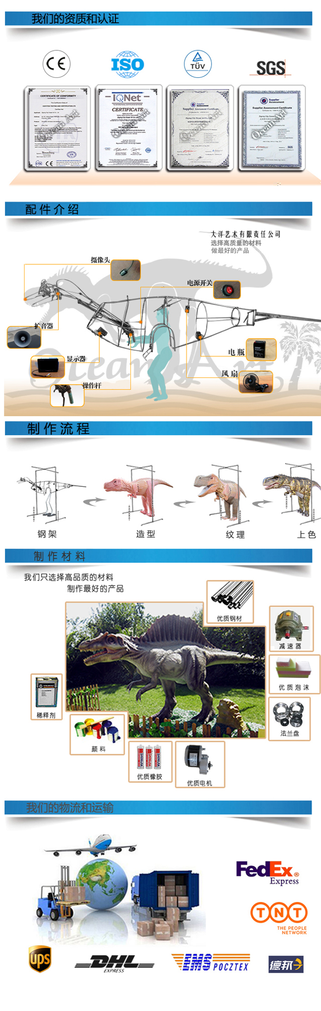 動(dòng) 作:人穿在恐龍身體里面,控制恐龍動(dòng)作