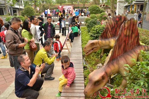 據(jù)了解,本次恐龍展是省內(nèi)規(guī)模最大、科技含量最高的一次,共有三疊紀(jì)、侏羅紀(jì)、白堊紀(jì)三個(gè)時(shí)期的56只仿真恐龍亮相,分5個(gè)展區(qū),其中第五展區(qū)位于水木花園最上面,是5個(gè)展區(qū)中唯一一個(gè)恐龍架展區(qū),最長(zhǎng)最大的馬門(mén)溪龍骨架長(zhǎng)22米,高8米,吸引著眾多游客的眼球,備受青睞。這樣的展出,在提供觀賞的同時(shí),為廣大兒童和青少年送上了一道科普大餐。